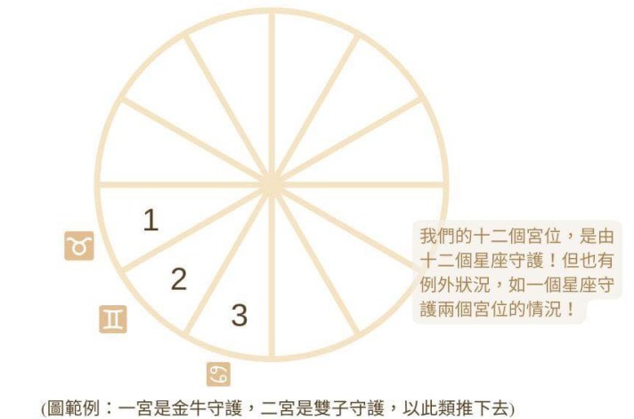 (圖範例:一宮是金牛守護,二宮是雙子守護)